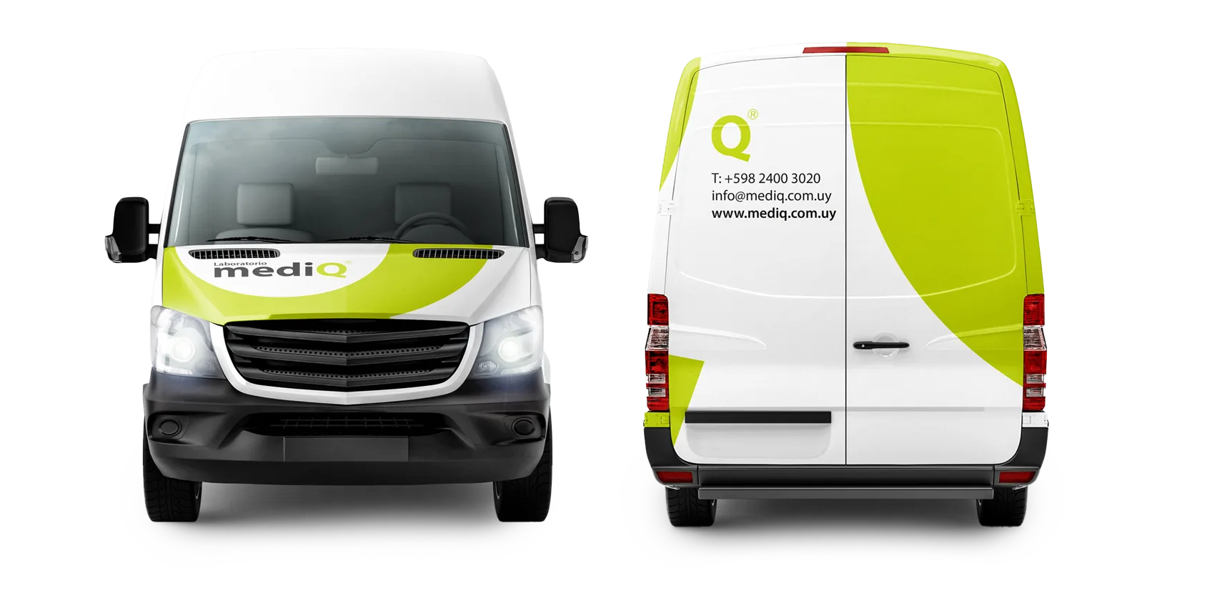 Nos encomendaron el diseño de la flota de vehículos del Laboratorio Mediq, así como también el diseño de la fachada de la empresa, la señalética y la gráfica interior.